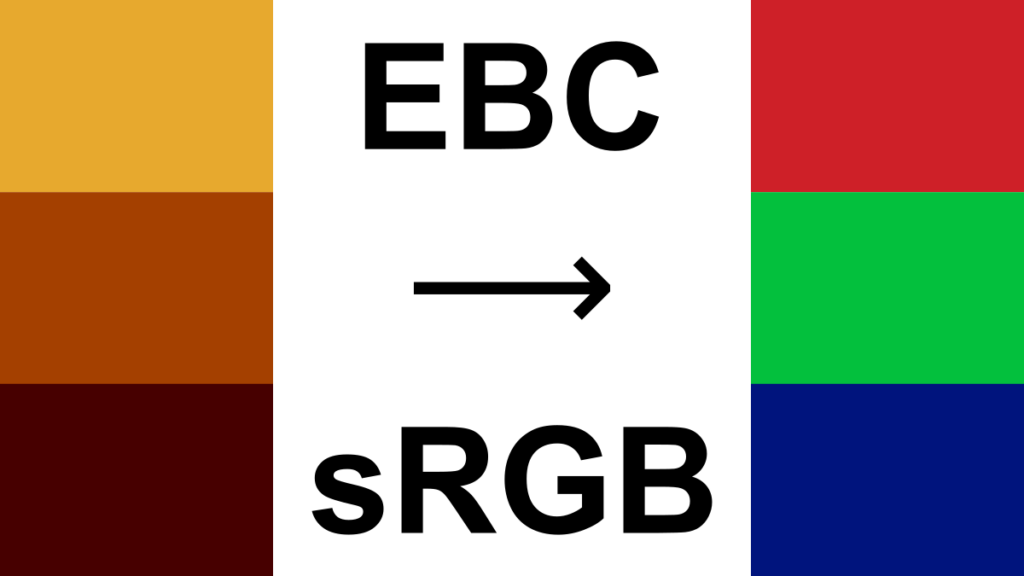 Die EBC Skala kann die Bierfarbe an sich nicht ausreichend charakterisieren, da das zugrundeliegende Verfahren nur eine Wellenlänge im blauen Bereich des sichtbaren Spektrums misst. Je nach verwendeter Schüttung kann die Bierfarbe bei gleicher Absorption visuell entweder rötlicher oder bräunlicher wahrgenommen werden (Tucker, 2017). Messungen nach der Tristimulus-Methode sind nicht von der selben Problematik betroffen. Bei dieser wird fast das gesamte sichtbare Transmissionsspektrum gemäß dem Verfahren ASTM E-308 zunächst in das CIE-Normvalenzsystem (XYZ-Farbraum) überführt und daraus dann anschließend ein eindeutiger Farbwert im CIELAB-Farbraum bestimmt (deLange, 2016; ASBC, 2011). Transformationen zu anderen Farbräumen sind ebenfalls möglich. Die entsprechenden Berechnungsvorschriften für den sRGB-Farbraum sind im Standard IEC 61966-2-1 festgelegt (W3C, 2015).